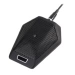 This boundary microphone delivers clear, highly intelligible speech with a cardioid pickup pattern that focuses on voices while reducing background noise and room reflections. Its low-profile design sits unobtrusively on conference tables, making it ideal for formal meeting spaces where both performance and aesthetics matter.