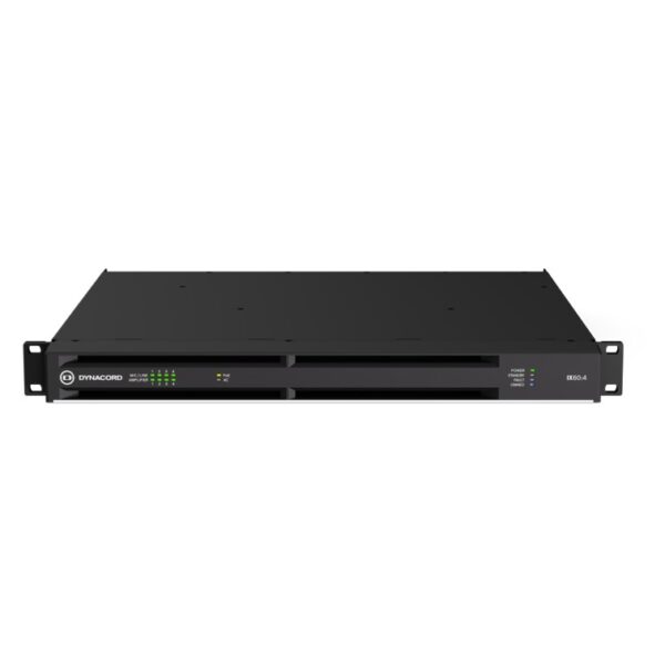 The Dynacord IX60:4 is a powerful 4-channel networked DSP power amplifier delivering up to 6 kW of total output power, engineered for high-performance professional audio installations. Designed to drive both high-impedance (70/100 V) and low-impedance loads, it offers exceptional flexibility for applications such as sports venues, houses of worship, performance spaces, and large commercial facilities.