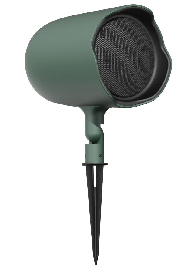 Versatile mounting options include a ground stake for in-ground installation and an L-bracket for secure mounting on either horizontal or vertical surfaces (both are included). A low-profile, unobtrusive speaker, the GSF6 blends right into its surroundings, and is aimable for precise coverage via an adjustable hinge. Available in hunter green and tan finishes.