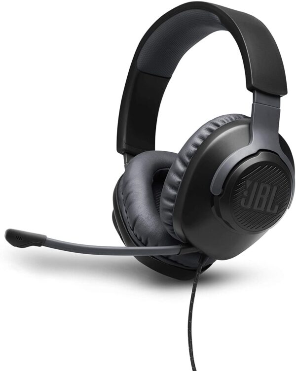 JBL Quantum 100 headset lets you rally the troops and opponents with clarity. The detachable, voice focus directional boom mic comes with mute features.