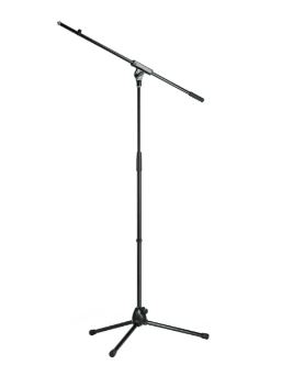Low-priced all-metal-stand. Consists of tubing assembly, boom arm and zinc die-cast base with long folding legs. Square swivel joint with large wing nut.