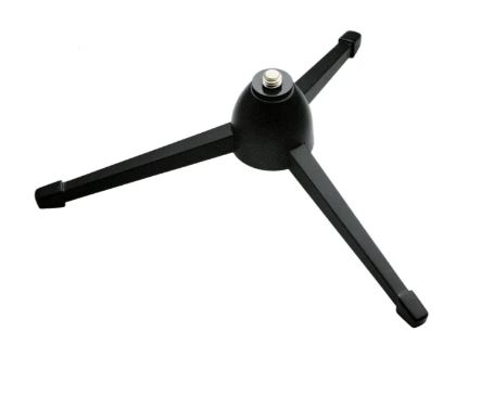 Inexpensive, handy table microphone stand for professional use. Sturdy plastic base with collapsible light-weight plastic legs and 3/8″ thread.