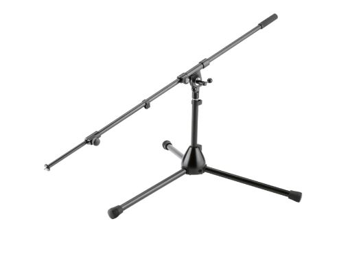 Low-level stand with folding base, complete with long, 2-piece extendable boom arm.