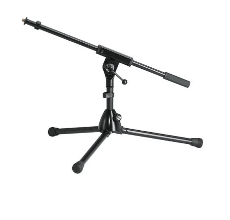 Extra low design for bass drums or special use. Die-cast base with folding legs. Comes complete with boom arm.