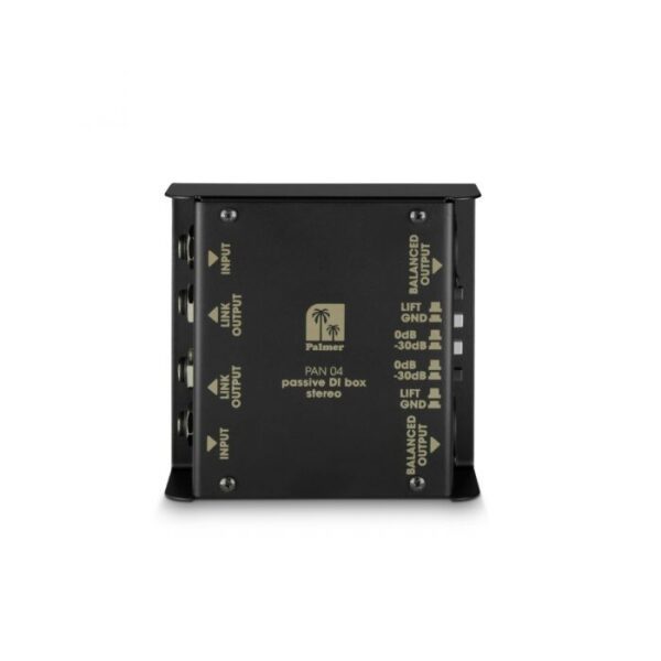 The PAN-04 consists of a housing containing the equivalent of two PAN-01s, making it a dual channel passive DI box. This „stereo” configuration makes it ideally suited for use with certain keyboards and devices which have several outputs.ive DI box. Jack input with paralell „THRU” output, transformer balanced XLR output. Attenuable input sensitivity, can handle both line level and speaker level signals.