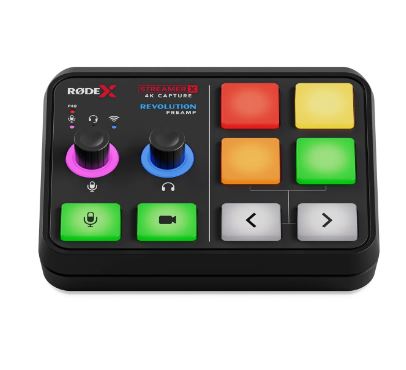 The Streamer X is a professional video capture card, audio interface and control surface integrated into one compact device that makes creating incredible content incredibly easy. It features studio-grade audio inputs for XLR microphones and instruments, headsets and RØDE wireless microphones, with an ultra-low-noise, high-gain Revolution Preamp™ and powerful APHEX® audio processing delivering pristine sound quality. HDMI connections offer up to 4K30 streaming and 4K60 pass-through for incredible video quality in a wide range of applications, from streaming and gaming to podcasting and content creation, to business presentations. Dual USB-C connections seamlessly accommodate dual PC setups, and four fully customisable SMART pads allow for on-the-fly triggering of sound or voice FX and other actions on a computer. The ultimate all-in-one streaming solution.