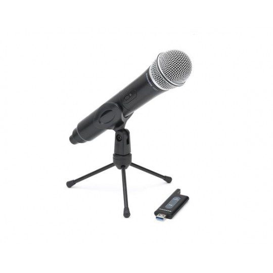 The Samson Stage X1U USB Digital Wireless Bundle brings freedom, convenience and high-quality sound to your computer recordings and digital communications. Using a USB-powered receiver and a handheld transmitter with the Samson Dynamic Microphone capsule, the Stage X1U provides 100′ of wireless range, simple setup, and natural, detailed vocals. Tripod stand and mic clip included.