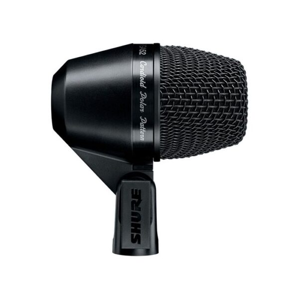 Cardioid Dynamic Kick Drum Mic (less cable) The PGA52 is a professional quality kick drum microphone with highly durable design and construction that delivers excellent sound. Featuring a swivel joint with a quick release latch for fast and flexible positioning, the PGA52 is ideal for use in low frequency performance and recording applications.   Best suited to: Kick Drum, Bass Amp   Features   Tailored microphone cartridge design specifically for low frequency clarity Swivel joint with quick release latch with a design similar to bicycle component-locking technology for extremely quick and easy positioning. Cardioid polar pattern picks up audio from the source while rejecting unwanted noise Updated industrial design with black metallic finish and grille for unobtrusive visual presence Available with and without XLR Cable for flexibility in gear choice With 15 ft (4.57 m) XLR-XLR cable Without cable Zipper pouch included for additional protection during storage or transport Legendary Shure quality design and construction for exceptional performance in rigorous environments.